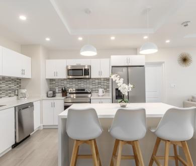 The apartment is located in a gated property with assigned parking for your convenience. High-quality finishes and modern fixtures throughout ensure a comfortable, relaxing stay.