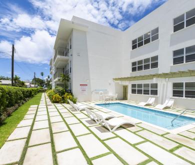 A modern stylish apartment with communal pool, very close to popular Mullins Beach