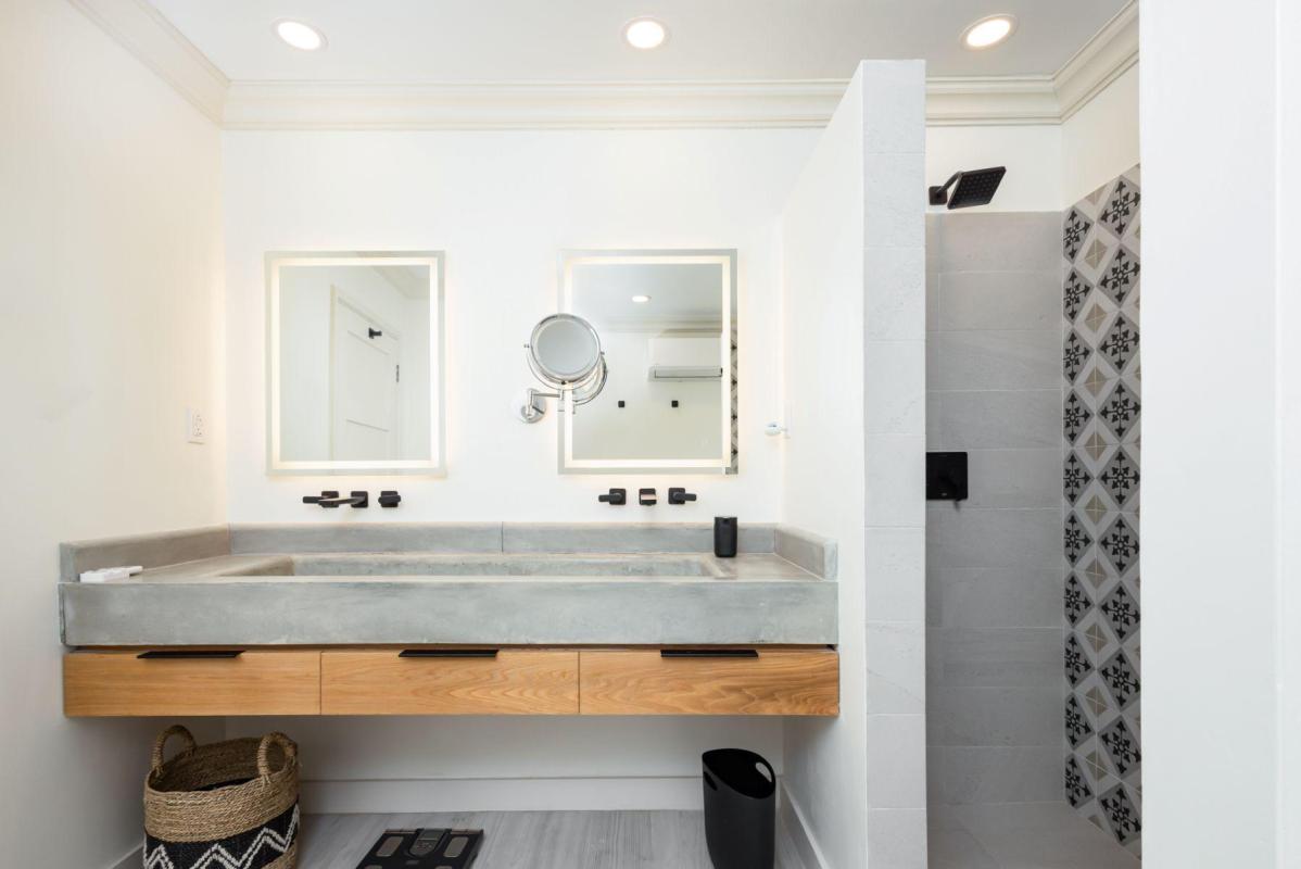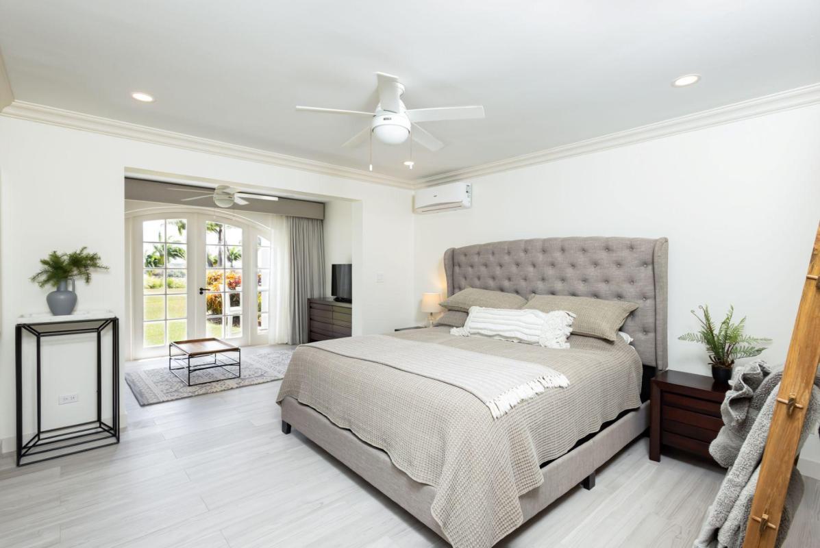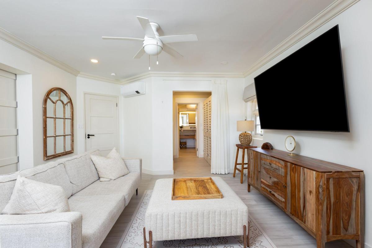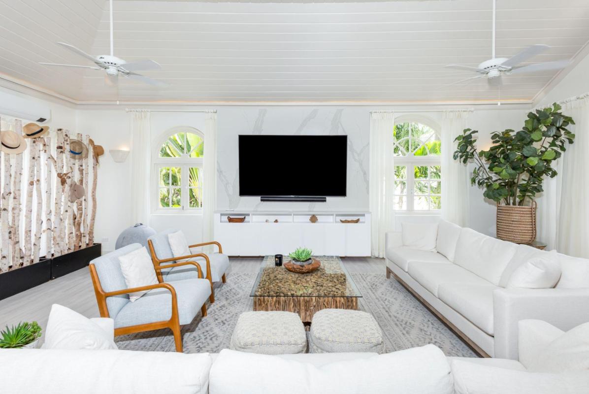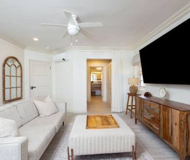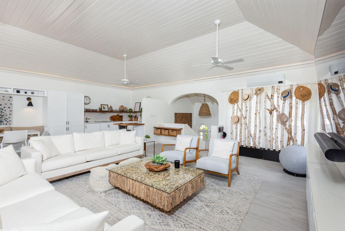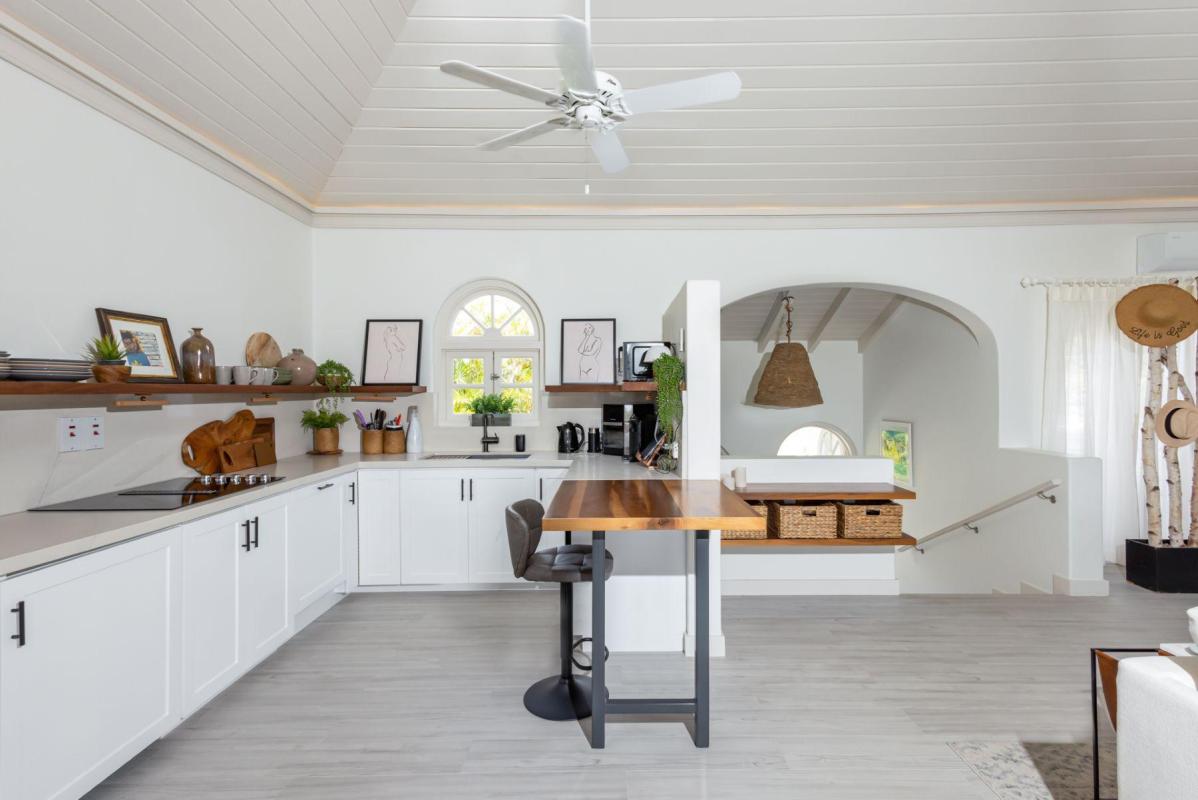 Forest Hills 2 “Sion House” is a stunning, recently renovated villa located in the Forest Hill Community of the exclusive Royal Westmoreland Golf Resort. This bespoke villa features two spacious bedrooms downstairs leading to a verandah overlooking Royal Westmoreland Resort and out to the turquoise hues of the Caribbean Sea. The upper level contains a large, well-lit and breezy room with open-plan kitchen, dining area and sitting room flowing on to a partially covered verandah where you can take in the well manicured grounds of the resort. Sion House also features a fully-contained guest cottage with one bedroom and ensuite bathroom.