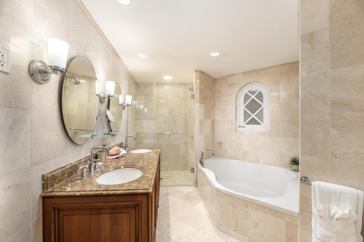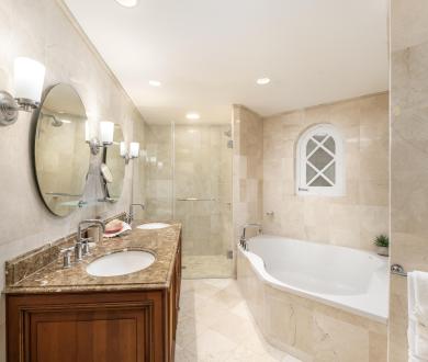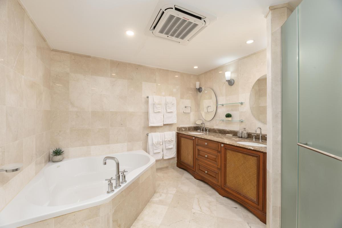 The main bedroom features a king-size bed, an ensuite bathroom, and direct access to the terrace. The second bedroom features two twin beds that can be combined to form a king, and it also has its own ensuite bathroom. The third bedroom features two double beds and a separate bathroom, ideal for kids or extra guests.