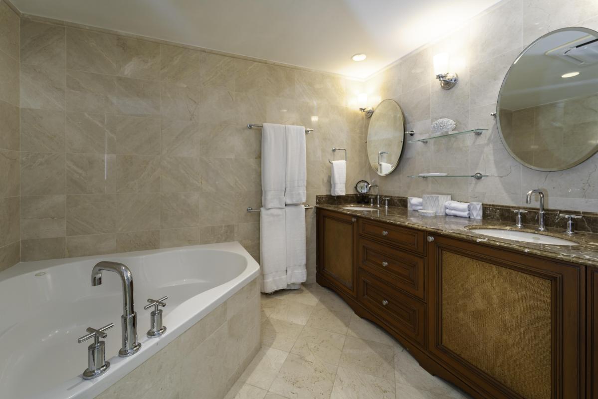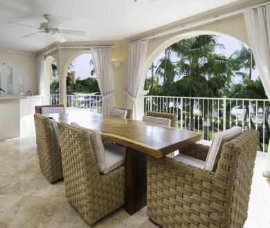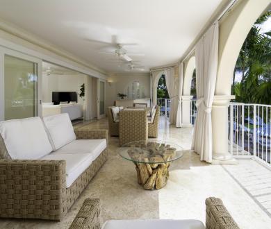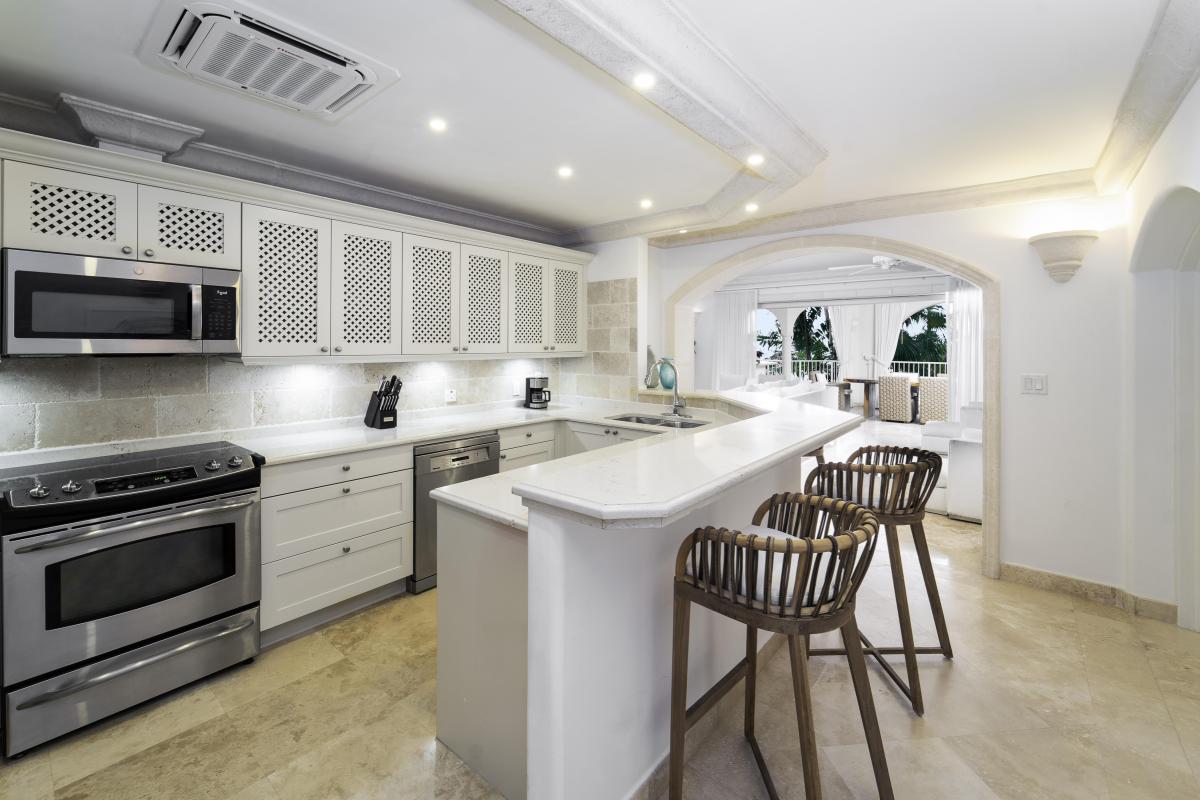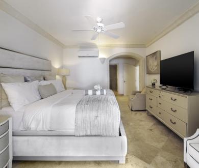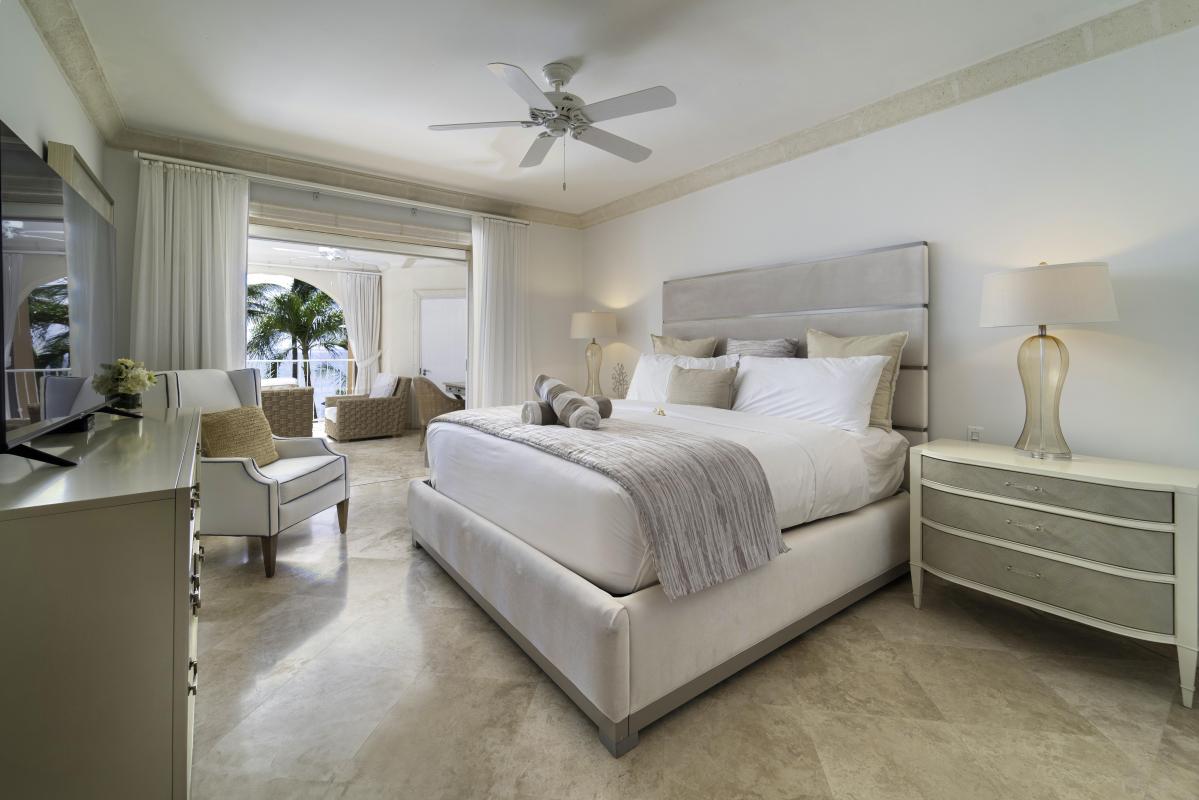 St Peter’s Bay 211 is a luxurious three-bedroom condo located on the West Coast of Barbados with stunning views of the Caribbean Sea. The primary bedroom offers a comfortable king-sized bed and a breathtaking sea view. The second bedroom boasts a queen-size bed and a private terrace, while the third bedroom offers two single beds that can be converted into a king-size bed, also featuring its private terrace. Each bedroom has its own ensuite bathroom with a relaxing tub. The third bedroom also features a pull-out couch that may be used for an additional child.