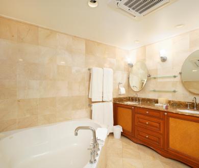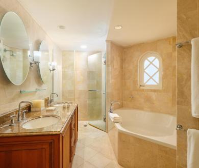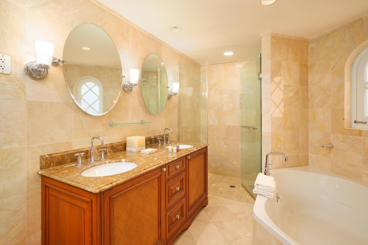 Each of the three en-suite bedrooms offers a serene retreat, with the master featuring a king bed, spacious bathroom with tub and shower, and double vanity. The second bedroom, with queen bed, also enjoys a spacious bedroom with tub, shower and double vanity; while the third bedroom, with queen bed, is ideal for families or groups. Thoughtful touches like air-conditioned bedrooms, ceiling fans, and Wi-Fi ensure your stay is as comfortable as it is memorable.