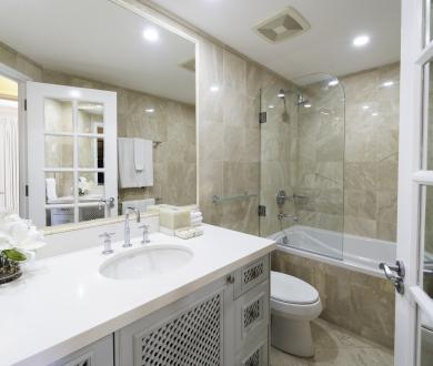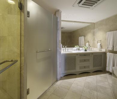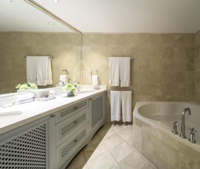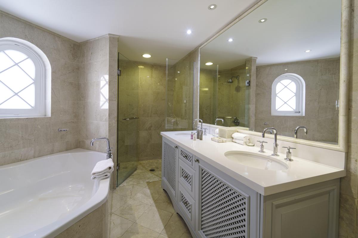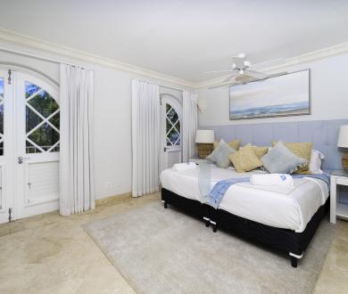 Each of the three bedrooms includes a cosy king-size bed for a peaceful night's rest, and the third bedroom offers the flexibility to be transformed into two twin beds if desired. The second bedroom offers added privacy with its secluded patio for relaxation. Each bedroom comes with a private ensuite bathroom equipped with double vanity sinks, a shower, and a bathtub. This charming property radiates a serene tropical ambience with its inviting decor. The calming light blue tones establish a peaceful atmosphere, perfect for unwinding and enjoying your Barbadian vacation.