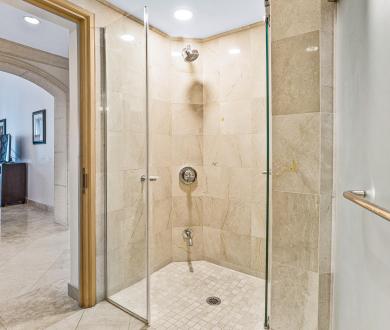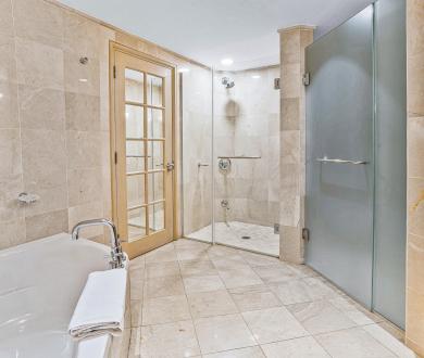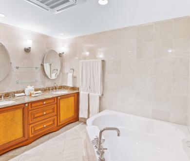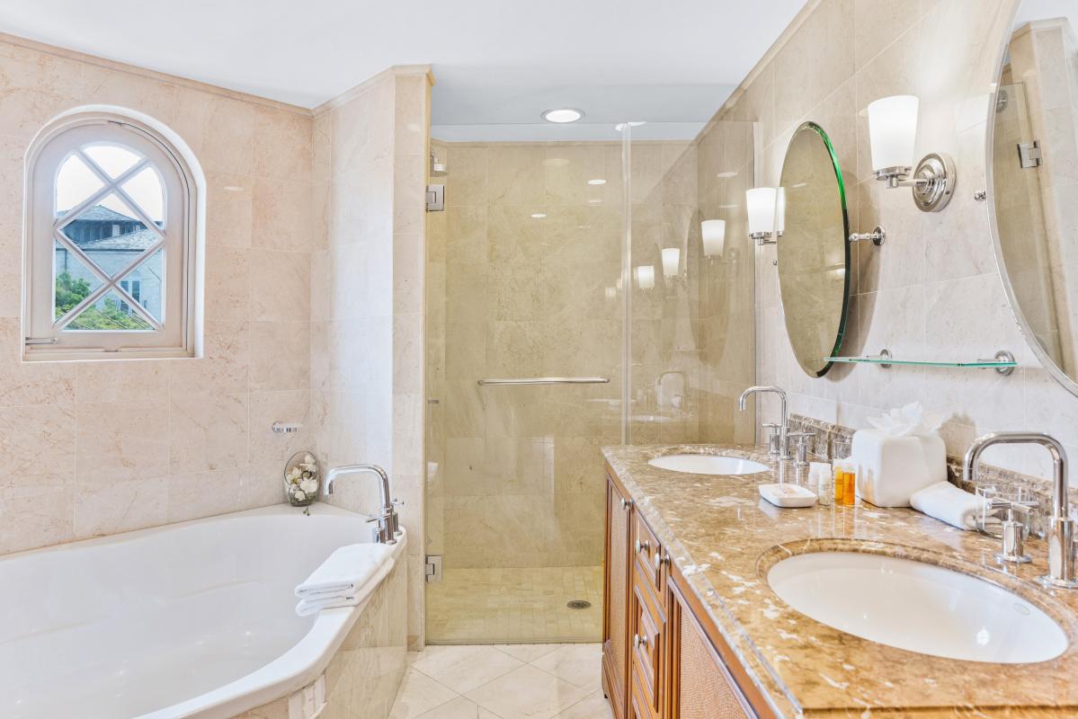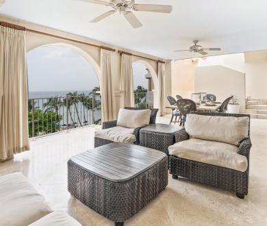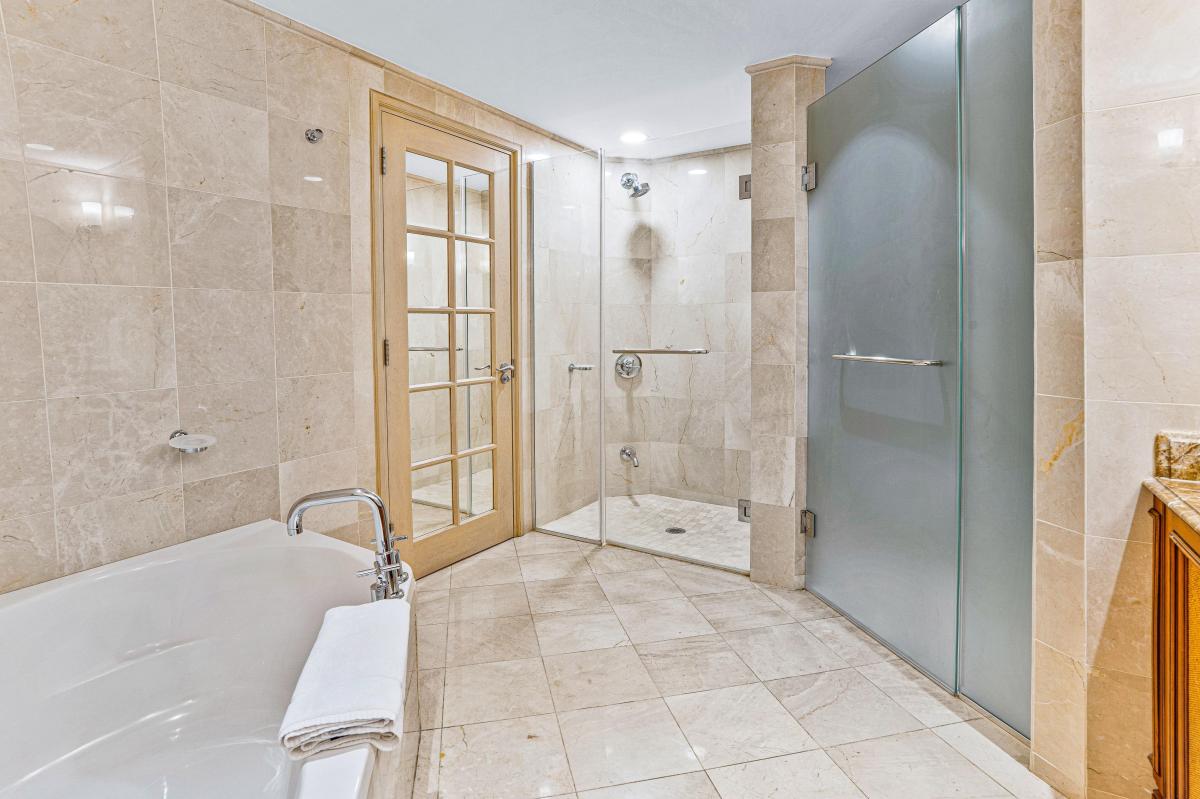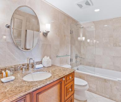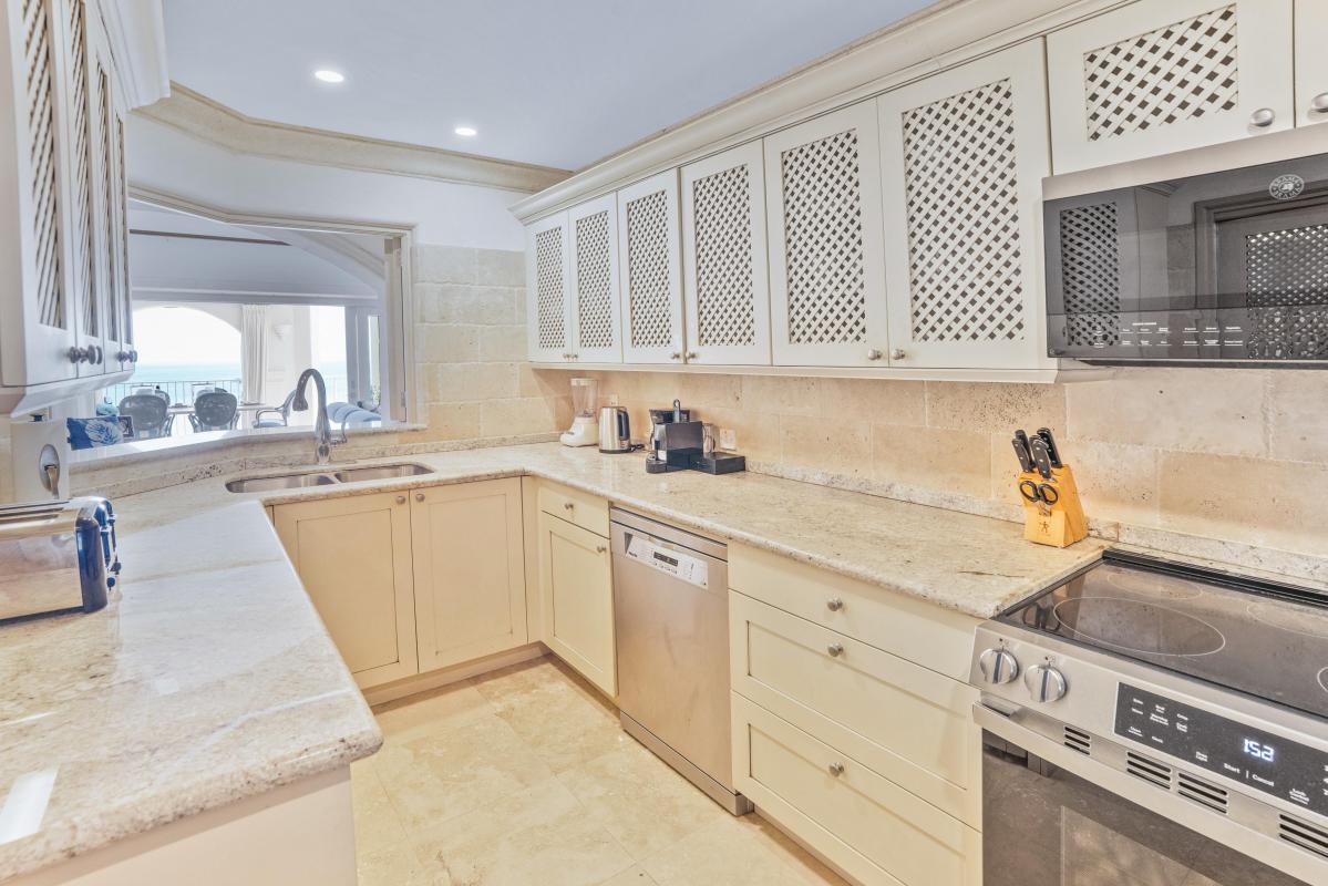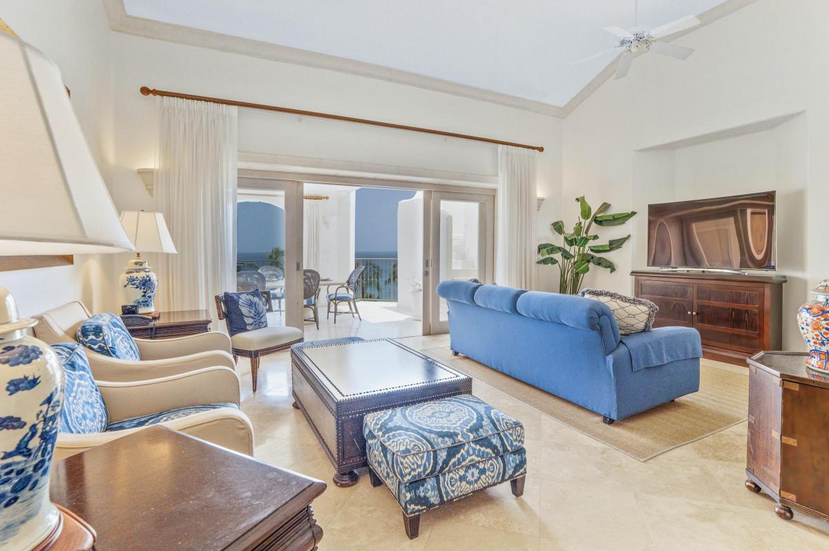 Primary Suite with direct views of the Caribbean Sea, and a luxurious ensuite with a soaking tub and walk-in shower. Second Bedroom with access to a private terrace, and a stylish ensuite bathroom. Bedroom 3 with two twin beds (convertible to a king), with its own ensuite.