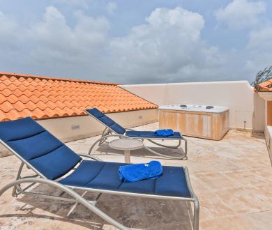 Take in sweeping ocean views from the spacious, covered terrace, complete with outdoor dining and lounge areas—perfect for sunset cocktails or al fresco meals. The private rooftop sun terrace offers an elevated space for sunbathing or simply soaking in the tranquil surroundings.