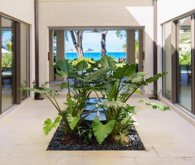 Sea Grove House captures the essence of refined coastal living on Barbados’ platinum west coast. Newly built and quietly elegant, this five-bedroom beachfront villa in St. James blends clean architectural lines with the easy rhythm of island life. From the moment you arrive, the sound of the courtyard fountain and the soft ocean breeze set a tone of calm sophistication.
