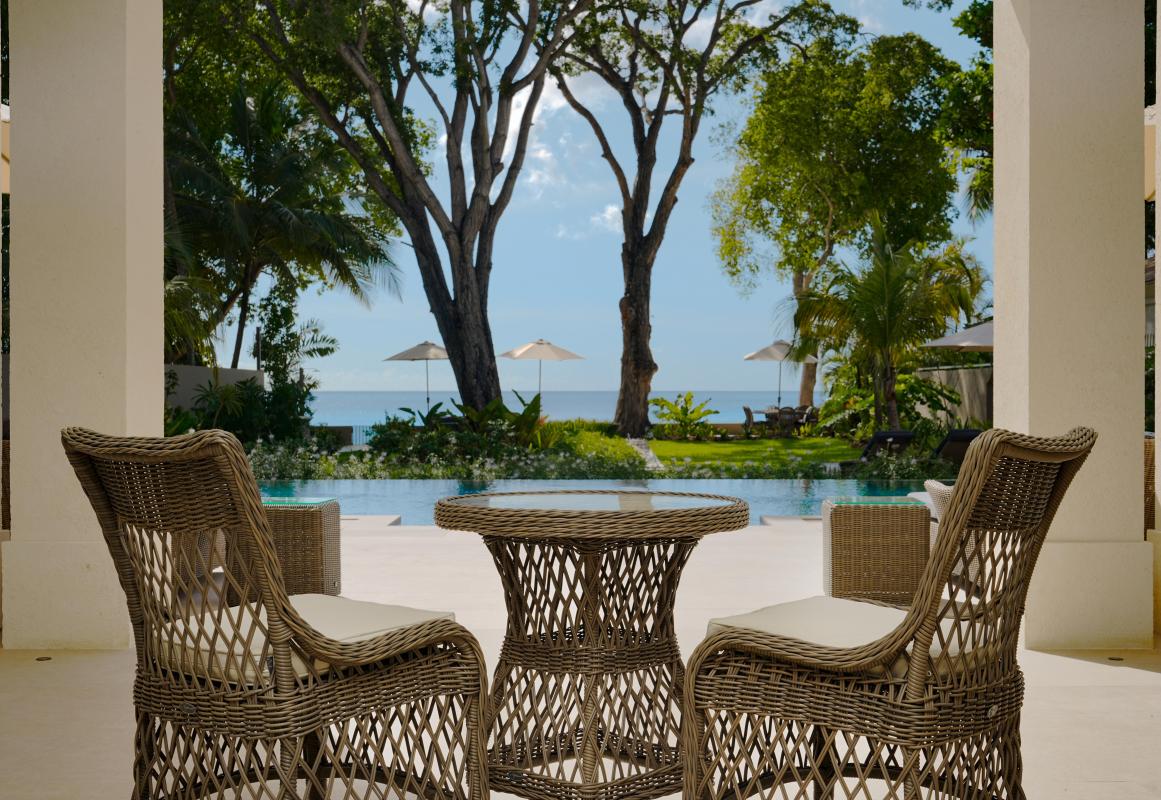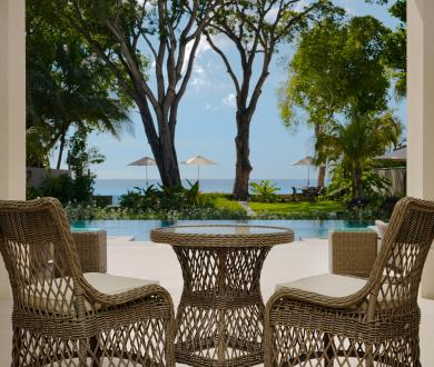 Every detail of Sea Grove House has been considered, cool stone floors, neutral tones, and natural textures that strike the right balance between elegance and ease. Outdoors, the expansive terrace offers shaded lounges and al fresco dining, overlooking the pool and a secluded stretch of beach, a rare find even on Barbados’ celebrated West Coast.
