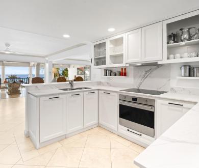 The expansively proportioned living benefits from bi-fold doors allowing the veranda and living area to be integrated into one thus offering plenty of space to spread out to enjoy the spectacular views of the Caribbean sea and beautifully landscaped tropical gardens. Amazing sunsets can be viewed from the veranda whilst sipping a “sundowner” or eating your dinner. The apartment offers the added benefit of membership to the in-house air conditioned gym which is located in the basement.