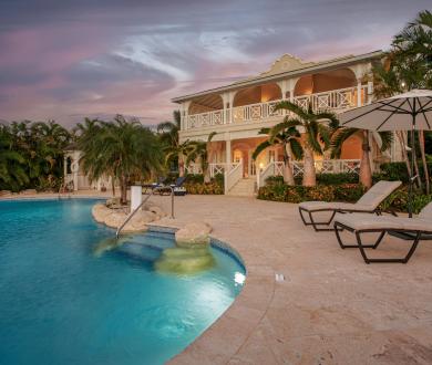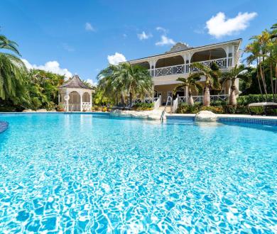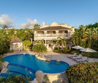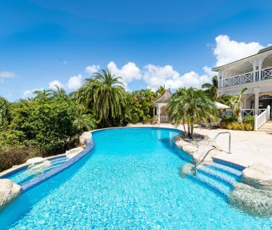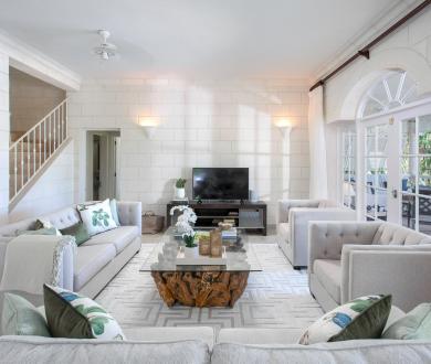 Tucked away on the private grounds of the prestigious Sugar Hill Resort & Community, Blue Waters is a beautiful five-bedroom, five-bathroom villa ideally positioned to take advantage of Barbados’ gentle breezes and Caribbean Sea views. Set amongst lush private gardens, this expansive villa houses four suites within the main house, as well as a one-bedroom self-contained guest cottage for ultimate privacy.
