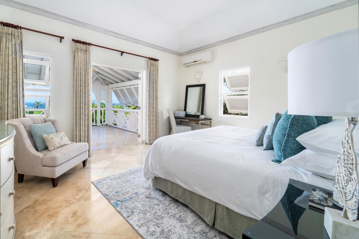 Also housed on the ground level are a fully equipped kitchen, a laundry room and one of the villa’s four suites, which boasts views of the beautifully manicured gardens. The remaining three suites are found on the upper level of Blue Waters, all of which are en-suite, tastefully decorated and share views of the Caribbean Sea. Each of the three suites grant access to a spacious terrace boasting breathtaking sea views, meticulously furnished to ensure guests make the most of this remarkable setting.