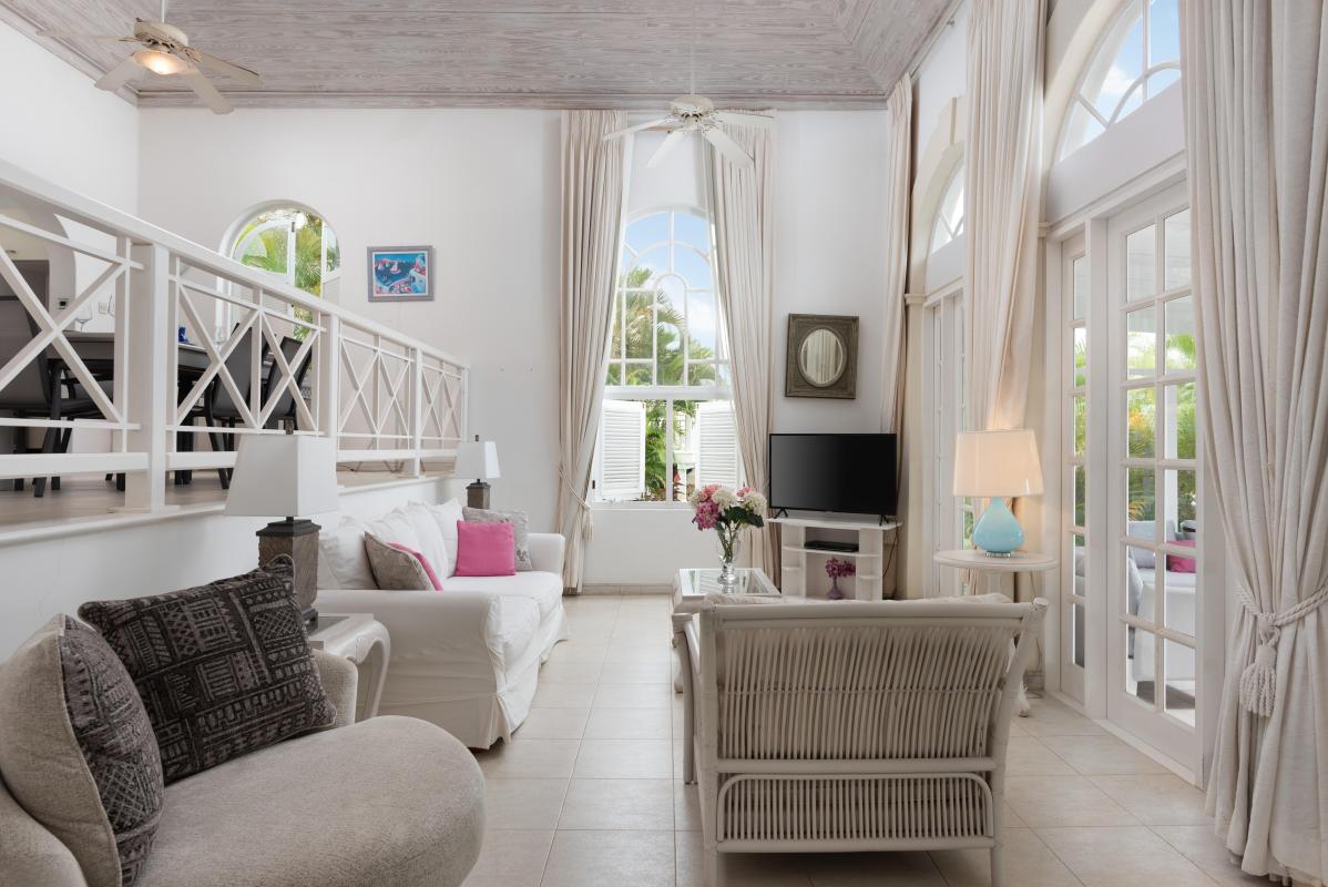 The inviting lounge area opens seamlessly to a newly constructed deck, providing picturesque vistas of the sea and the charming Clubhouse below. This Barbados vacation rental offers a perfect blend of luxury and relaxation, ideal for those seeking an unforgettable Caribbean experience.