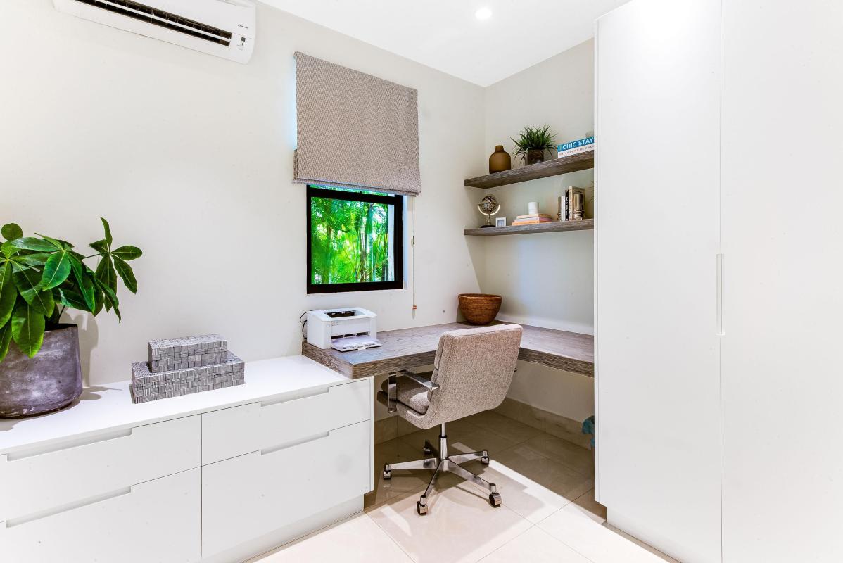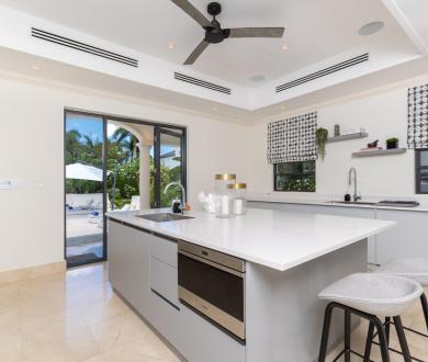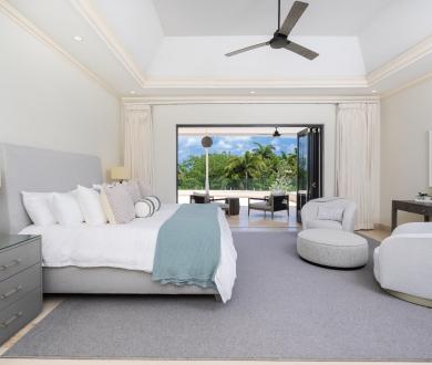 This beautifully designed villa blends modern elegance with timeless island charm. Soaring ceilings, sleek contemporary furnishings, and thoughtfully curated living spaces create an atmosphere of understated sophistication. A fully automated entertainment system, Apple TV, and Sonos sound elevate the experience with seamless modern convenience. The main residence features four impeccably appointed bedrooms, while a separate, self-contained cottage offers two additional suites, ideal for guests seeking privacy or extended family stays. The bedroom configuration includes three king suites and three twin-bedrooms, offering exceptional flexibility for families or larger groups.