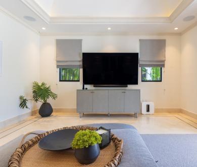 The villa is fully staffed six days a week, with dedicated professionals including a butler, cook, housekeeper, and laundress ensuring an effortless and pampered stay. Thoughtful features such as a media room, high-speed Wi-Fi, air-conditioned bedrooms, ceiling fans throughout, a secure garage, and ample guest parking combine to offer both comfort and convenience.
