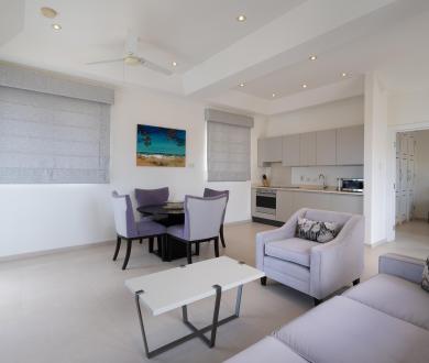 As you step inside, you are greeted by a cosy living space tastefully decorated with Caribbean flair. The apartment features a fully equipped kitchen, a comfortable living area, and a dining space, all designed to make you feel right at home. However, the real highlight of this apartment is its private balcony, where you can indulge in al fresco dining while taking in the mesmerising views over Paynes Bay. Whether it's enjoying your morning coffee or savoring a romantic dinner as the sun sets over the horizon, this balcony offers the perfect spot to relax and soak in the beauty of the Caribbean.