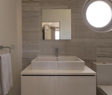 Inside, the apartment is thoughtfully furnished with your comfort in mind. The bedroom boasts plush bedding, ensuring a restful night's sleep after a day of exploring the island. The bathroom is modern and well-appointed, featuring all the necessary amenities for your convenience.