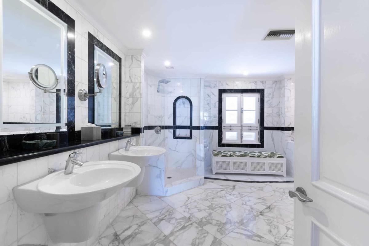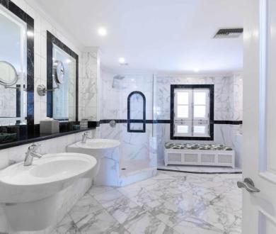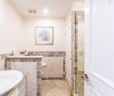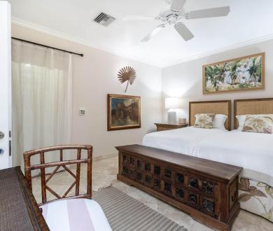 Accommodating up to four guests, each bedroom is a private haven, boasting spa-inspired en-suite bathrooms, tasteful decor, and resort-quality appointments. The primary suite features a king-size bed, an expansive walk-in closet, and a secluded terrace perfect for morning coffee or twilight reflections. The en-suite bath is a sanctuary in itself—complete with dual vanities and a spacious walk-in shower. The second bedroom offers a plush king bed, its own balcony, and serene views across the shimmering pool.