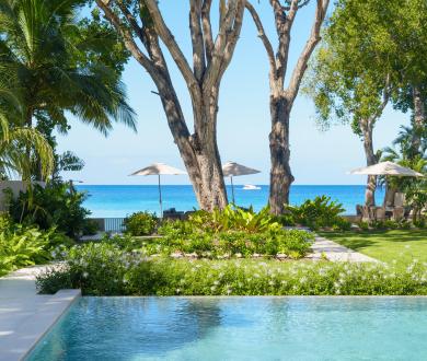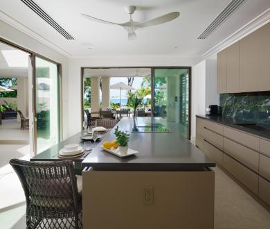 Every detail of Sea Grove House has been considered, cool stone floors, neutral tones, and natural textures that strike the right balance between elegance and ease. Outdoors, the expansive terrace offers shaded lounges and al fresco dining, overlooking the pool and a secluded stretch of beach, a rare find even on Barbados’ celebrated West Coast.