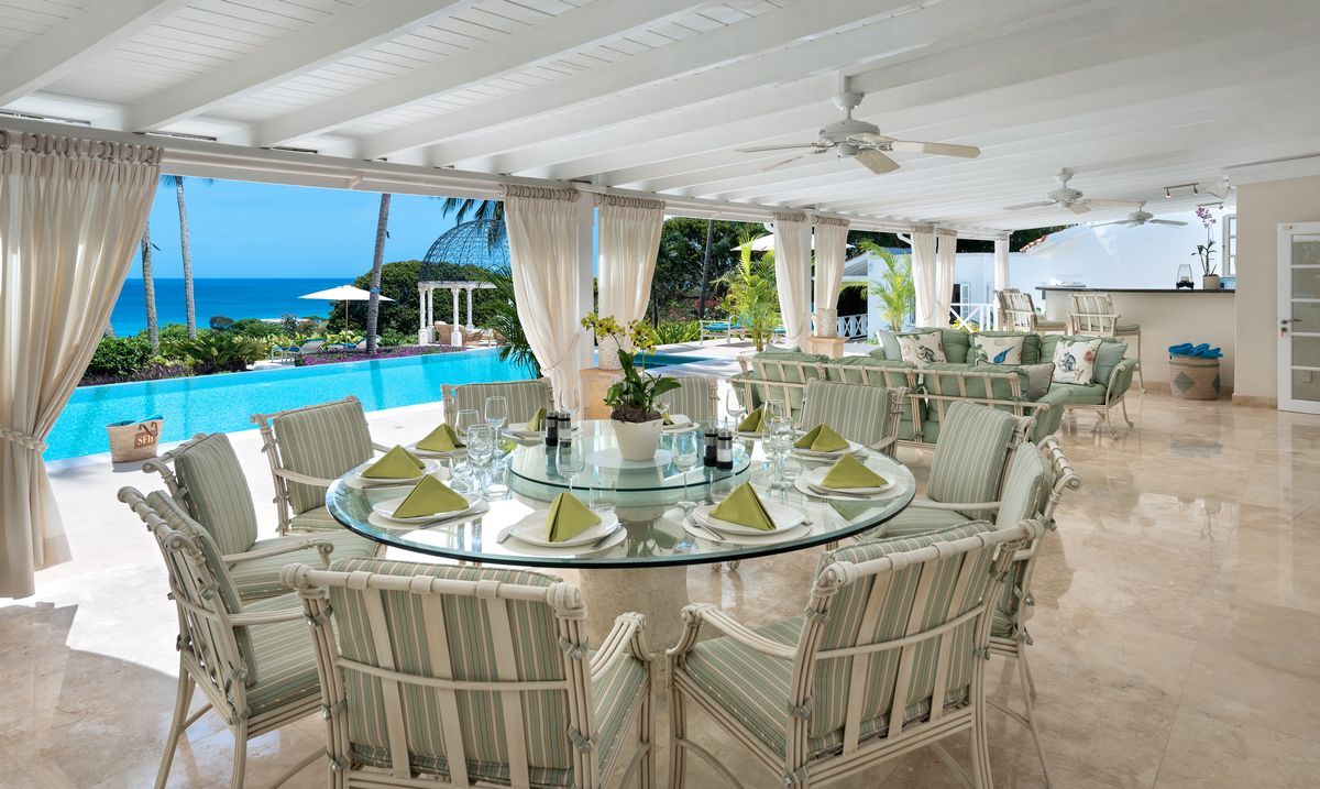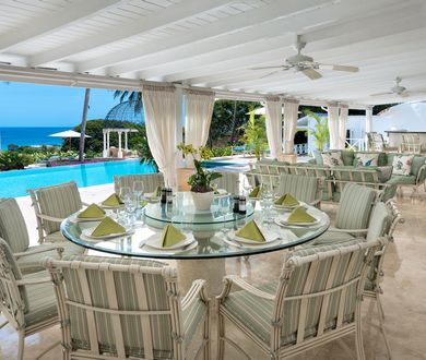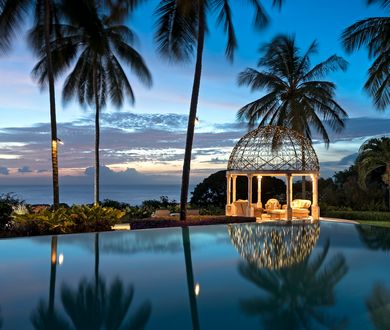 The elevated location of this vast property renders swimmers unable to differentiate between the infinity-edge pool and nearby sea and brings those seated under the latticed hemisphere gazebo just a touch away from the Barbadian stars.