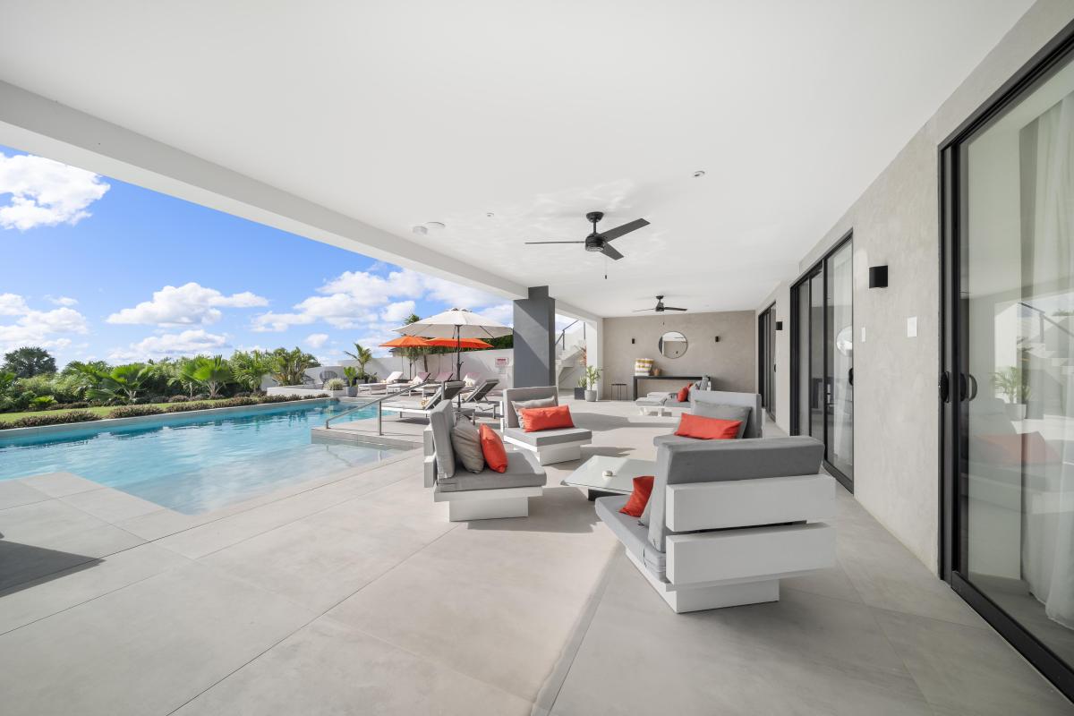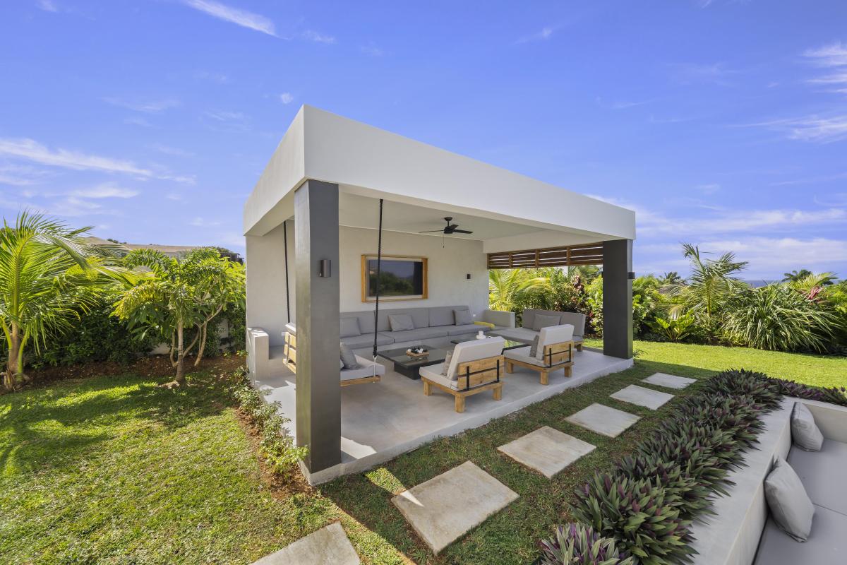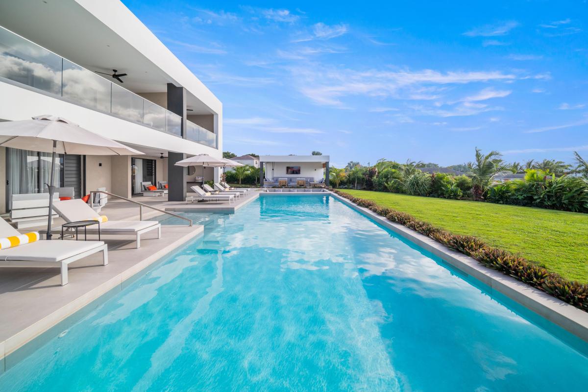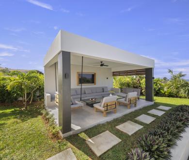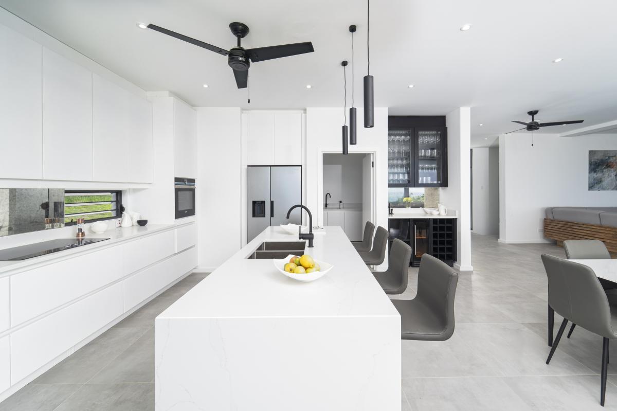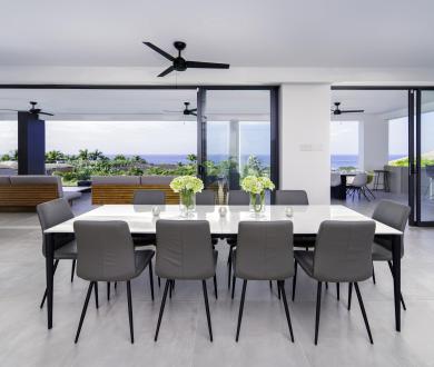 On entering the home, the lobby flows into a vast open-plan living area, seamlessly connecting indoor and outdoor spaces. The large sliding doors allow for endless tropical breezes and views from the spacious terrace, perfect for entertaining and overlooking a 46-foot saltwater swimming pool. This villa offers exceptional culinary amenities, from the main kitchen to the separate chef's kitchen and staff facilities. As for other amenities, this property has everything you could dream of, including a media room, gym, private office, and a rear lawn with badminton and volleyball nets. Guests can also enjoy al fresco dining with the outdoor kitchen and BBQ.